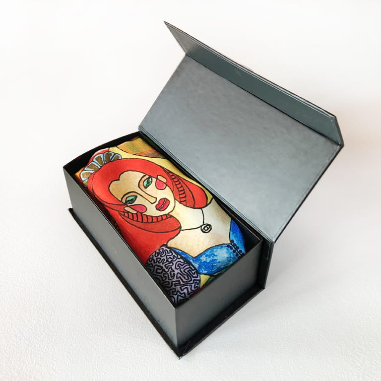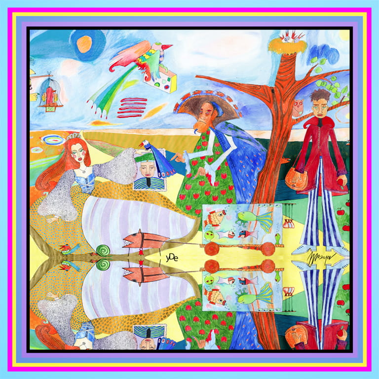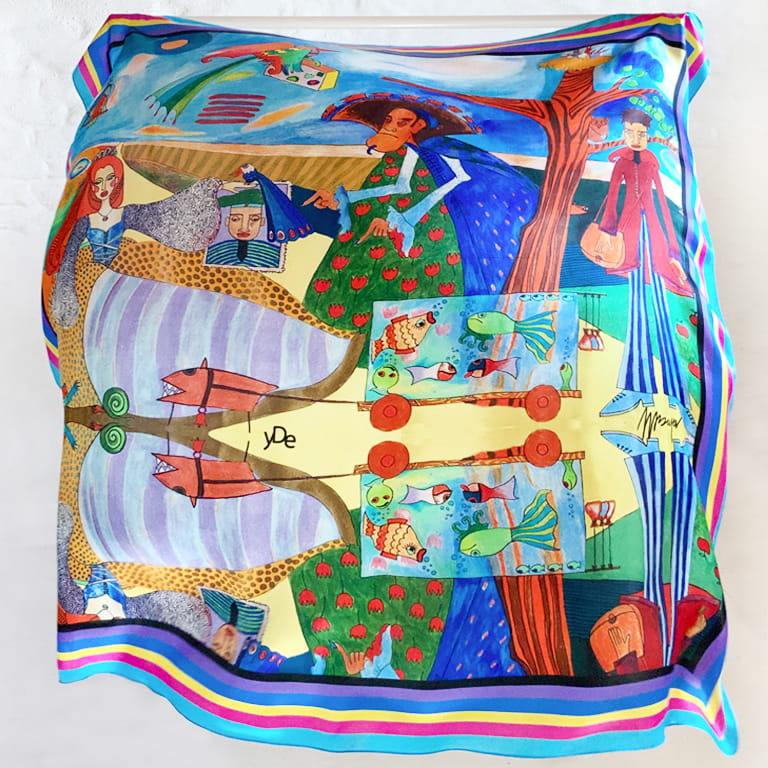Vivid colours will give you strength and energy and a story presented on the colourful scarf will take you to a totally different world, in which the story depicted through pictures and beautiful words creates a magic atmosphere of fairy tales. That is why each scarf has its own story...
