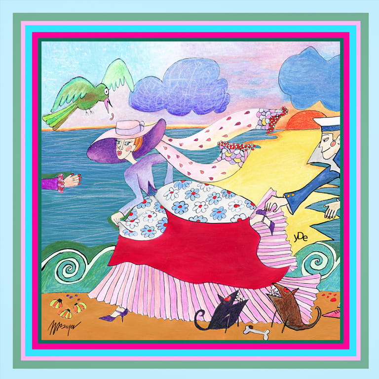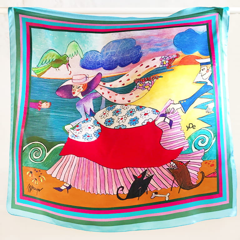 Vivid colours will give you strength and energy and a story presented on the colourful scarf will take you to a totally different world, in which the story depicted through pictures and beautiful words creates a magic atmosphere of fairy tales. That is why each scarf has its own story...