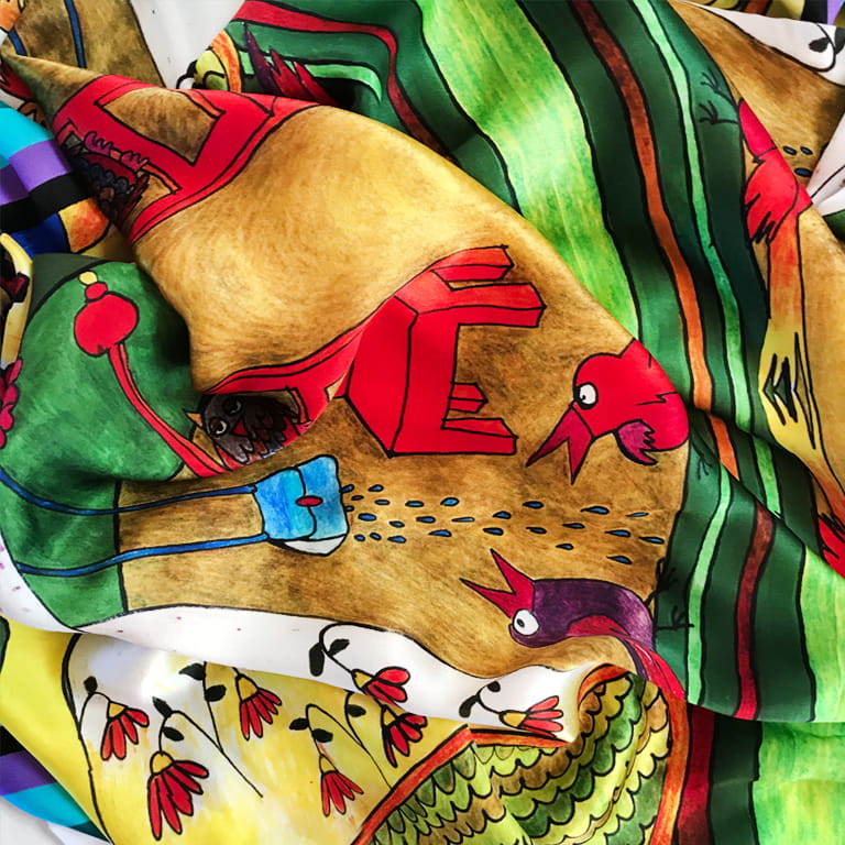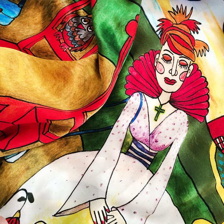 Vivid colours will give you strength and energy and a story presented on the colourful scarf will take you to a totally different world, in which the story depicted through pictures and beautiful words creates a magic atmosphere of fairy tales. That is why each scarf has its own story...